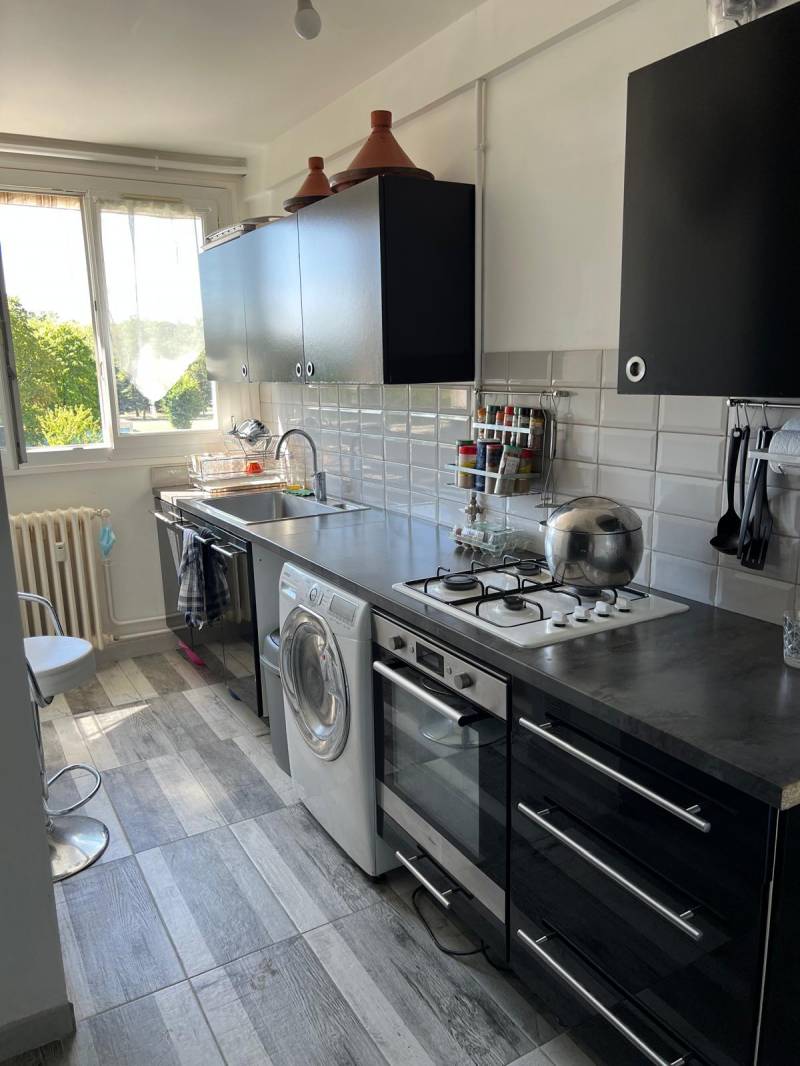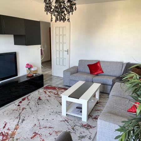 Dans résidence de bon standing, charmant appartement 3 pièces offrant : une grande entrée avec placard, séjour avec balcon, 2 chambres, cuisine séparée, salle de bains, wc. Garage avec porte électrique et une cave.