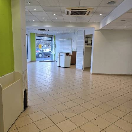 Rue de La République, grand local commercial situé en zone franche, comprenant : espace de vente divisible, 2 grandes vitrines, réserve, wc avec lavabo. Sortie de secours ou livraisons.Grand parking gratuit.